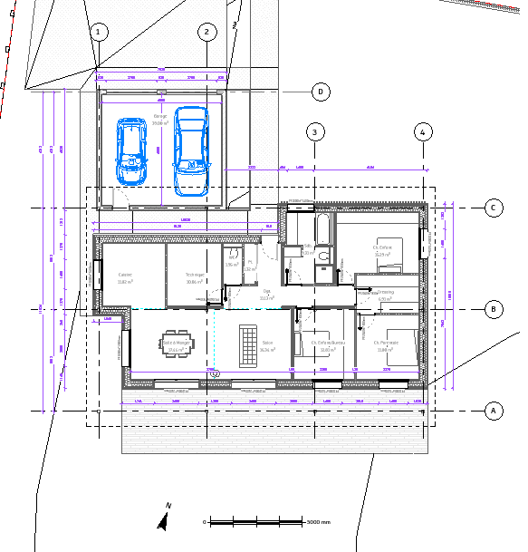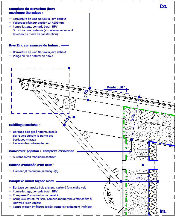 - Projet de maison passive avec volonté de labellisation « Passiv Haus ». Structure bois sur pieux vissés.