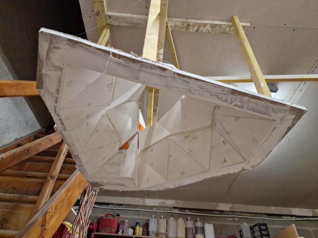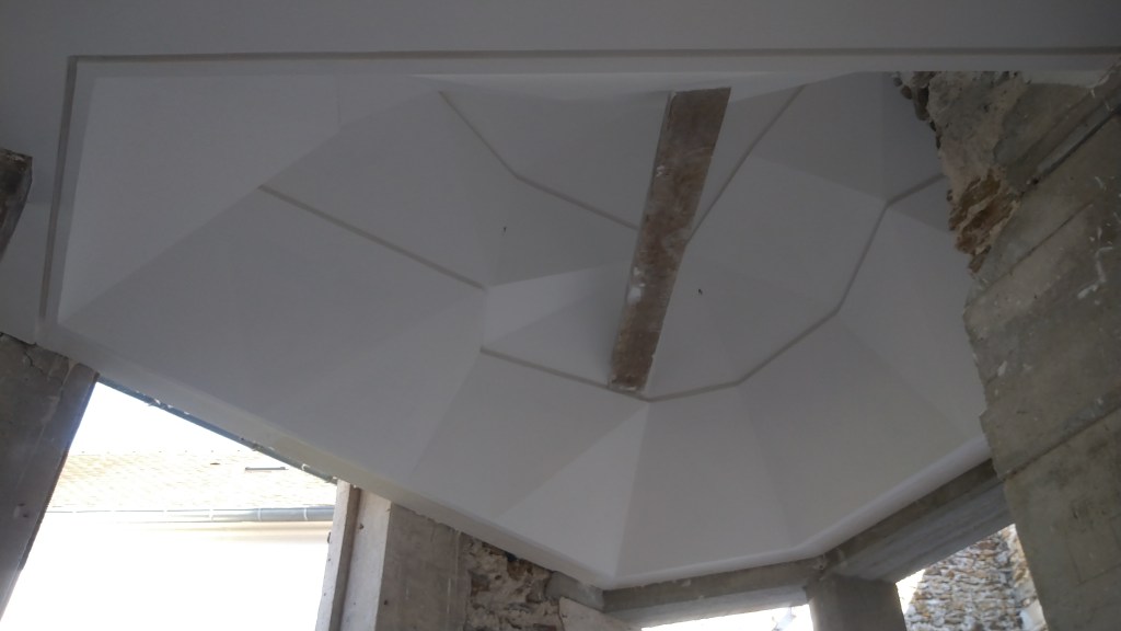 Situé au cœur de Coulommiers, ce plafond vient épouser les structures de la couverture existante pour créer un espace exploitable et original pour des expositions ponctuelles.