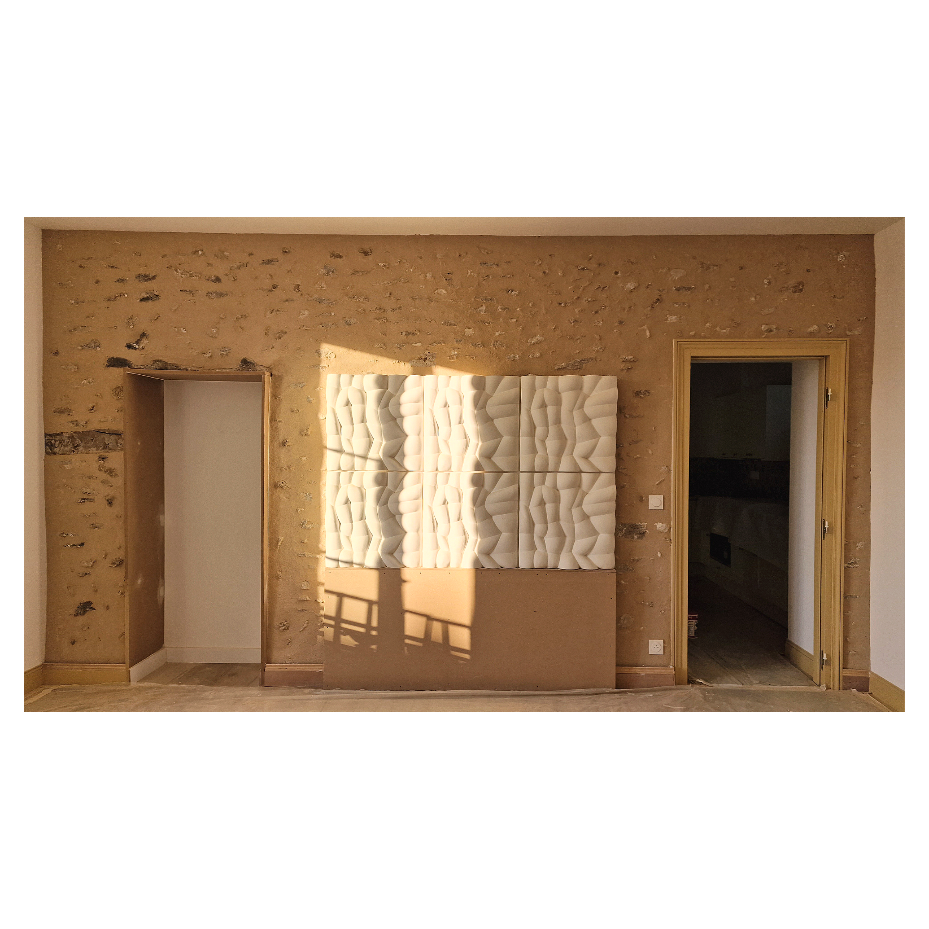 En plâtre et en paix pour les décennies à venir. Matière des plus locale pour tenir l’ensemble.